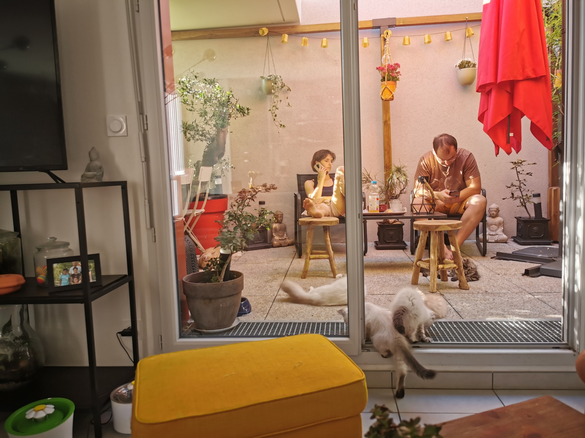 J'avais le choix et j'ai décidé de rester en appartement pour coller au mode d'habitat de 70% des personnes qui nous contactent avec une terrasse transformée en patio pour préparer malgré tout un minimum les chatons qui eux connaîtront un extérieur . En effet j'essaie d'adapter l'éducation de chaque chaton à sa future vie. Ce choix limite mon nombre de chats, mais quand je n'ai pas le chaton dont vous rêvez je propose ceux de chatteries amies.